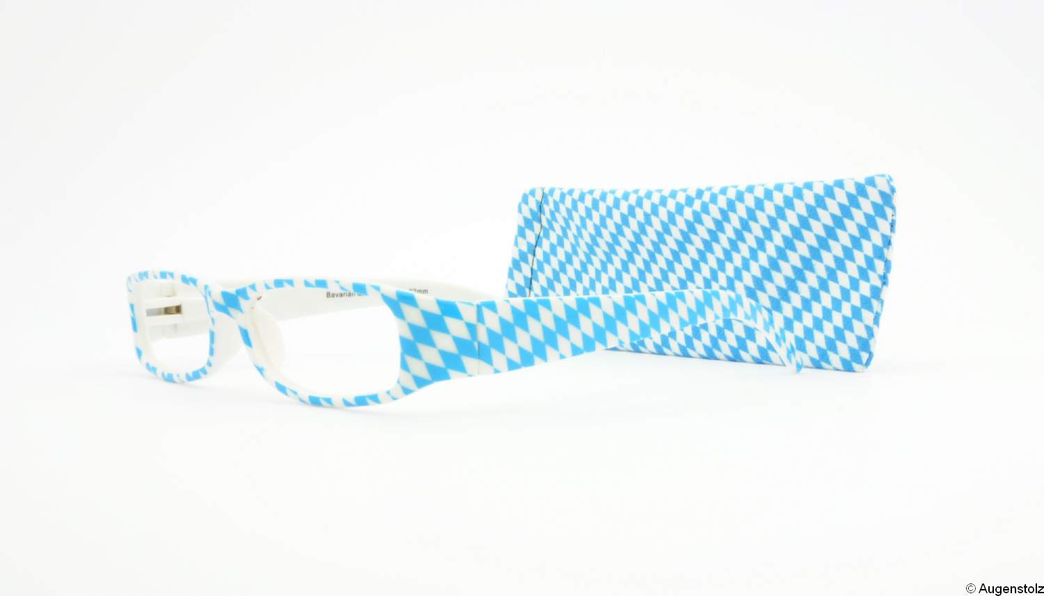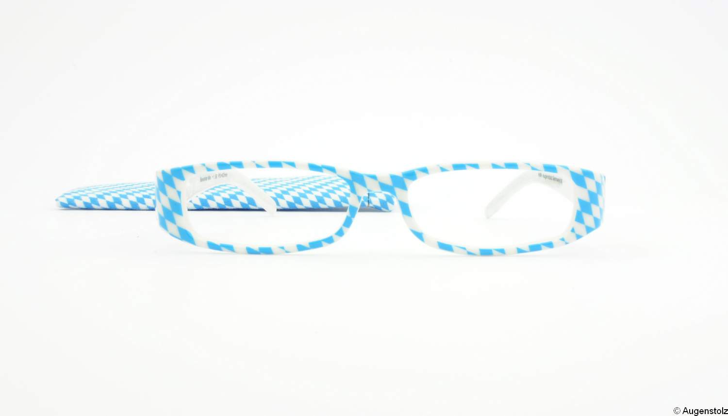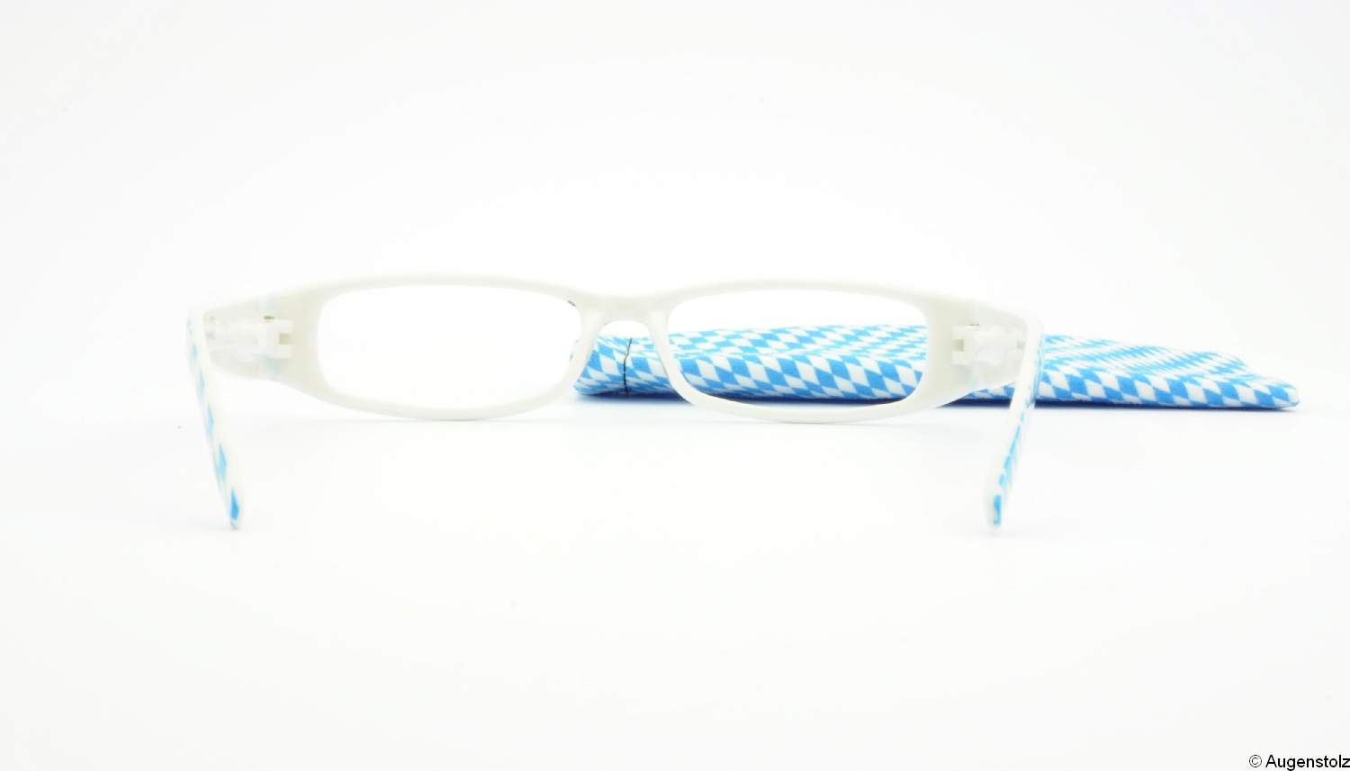 Modische Lesebrille mit Federbügeln und passendem Softetui. - Fashion reading glasses with spring hinges and fitting soft pouch.